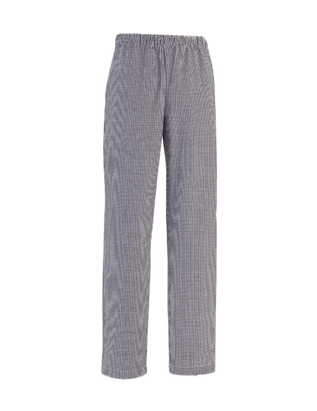 Pantalone con elastico in vita; tasche laterali (2) e posteriore (1).