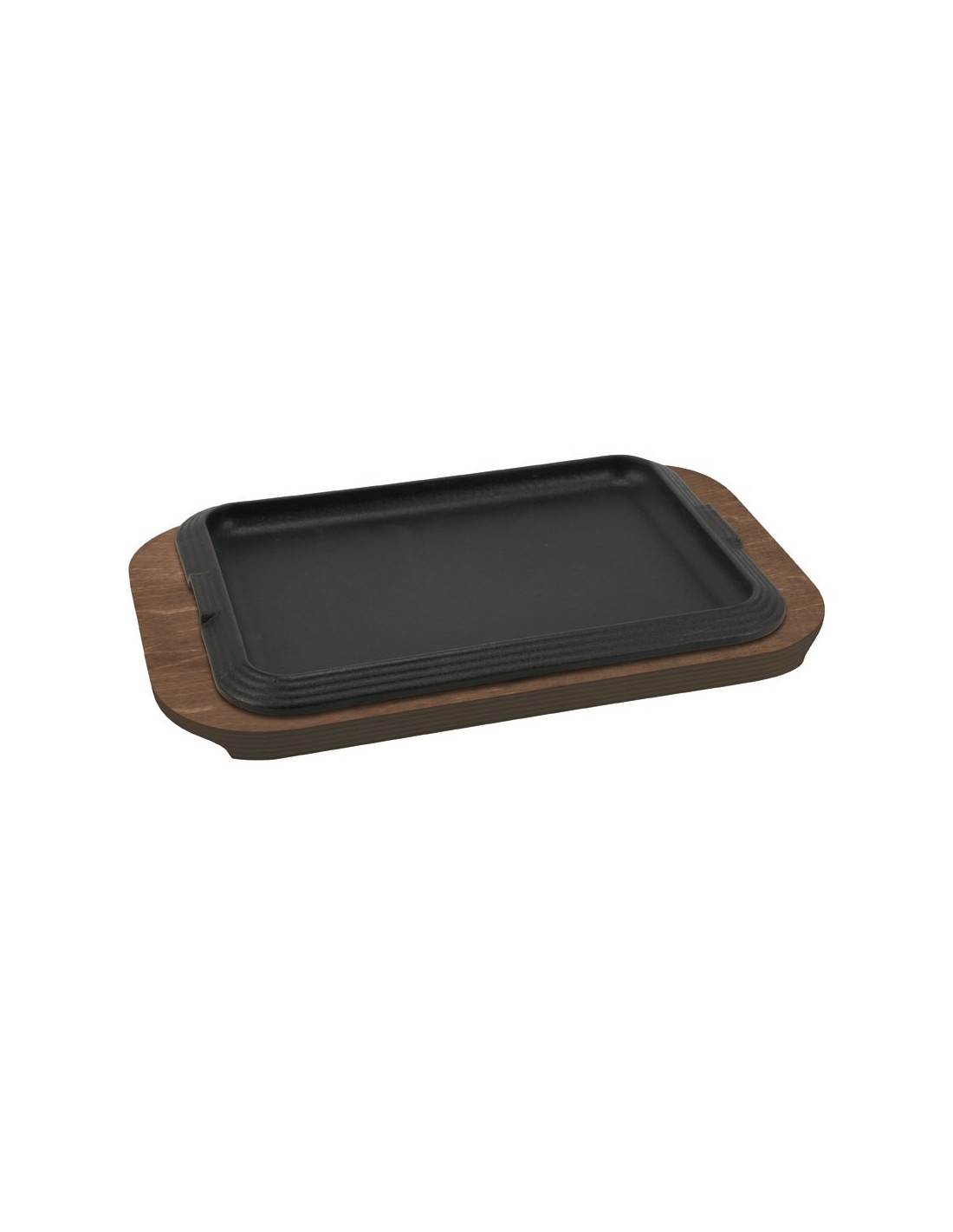 Piatto a servire rettangolare in ghisa smaltata con vassoio in legno multistrato BASIC da 30x22 cm. Perfetto per servire carne o pesce e mantenerli caldi più a lungo, il piatto in ghisa smaltata è realizzato con uno spessore elevato che mantiene il calore ed è caratterizzato da un elegante bordo geometrico che esalta le pietanze servite in tavola.