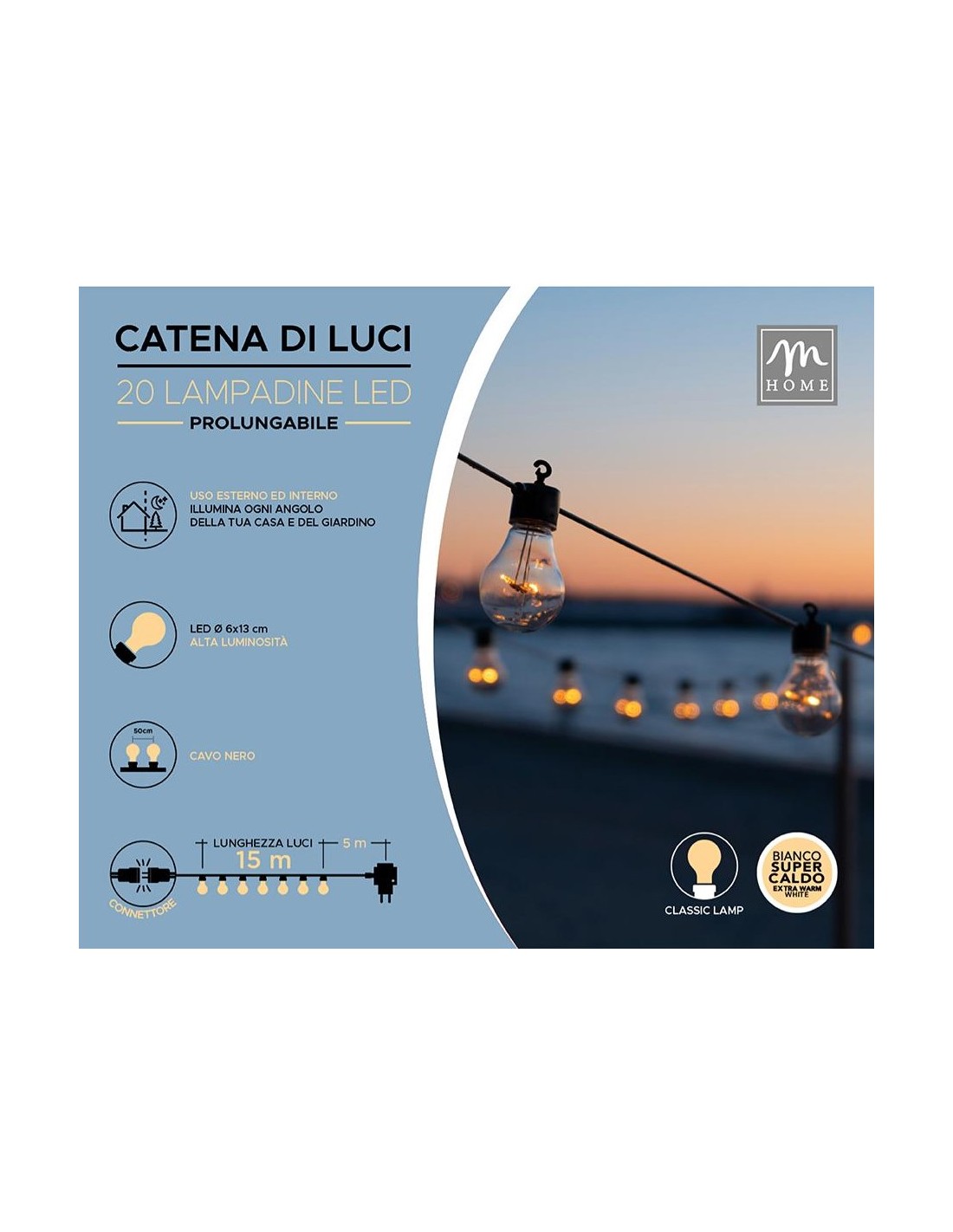 20 LAMPADINE BIANCO CALDO DA ESTERNO PROLUNGABILE 15M
