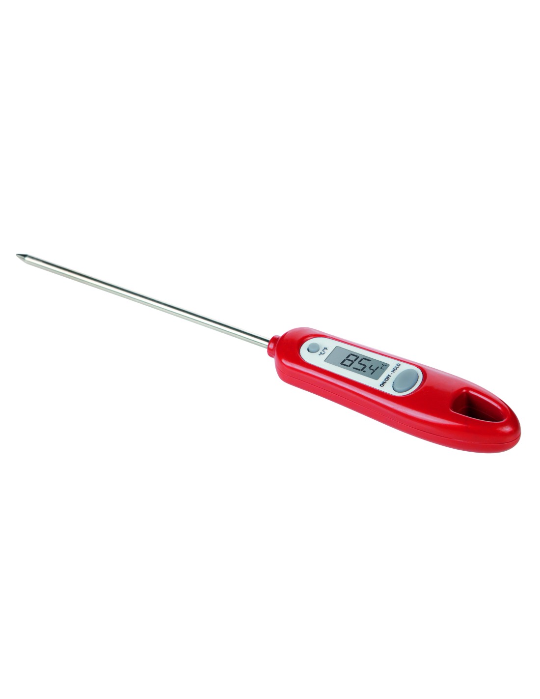 Indispensabile per preparare tutte quelle ricette che necessitano di un controllo specifico della temperatura, come le marmellate fatte in casa, il cioccolato, le creme e le salse. Il termometro digitale misura velocemente da -50 a +300 °C commutabili in °F ed è preciso. Prodotto in acciaio inossidabile di alta qualità e plastica resistente, provvisto di un display LCD e di una custodia protettiva per il sensore termico che è lungo 11 cm. Funziona con una comune batteria LR44 inclusa nella confezione. Resistente al vapore e all’umidità.