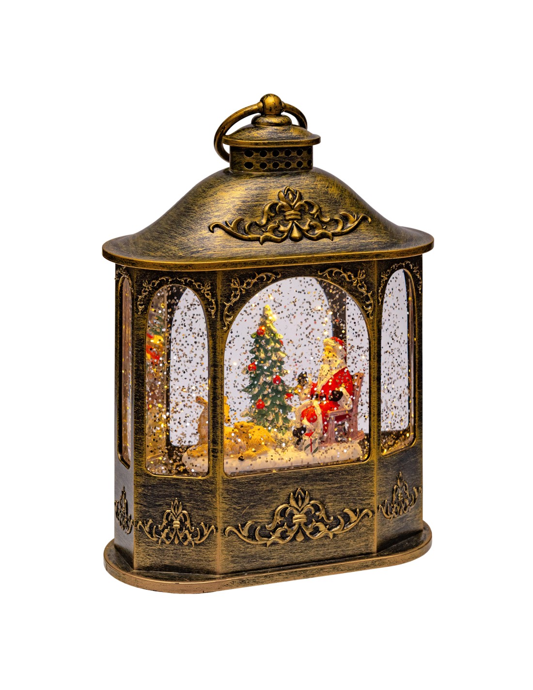 Lanterna Esagonale H21cm Plastica Marrone Brunita GLITTER LED BIANCO CALDO