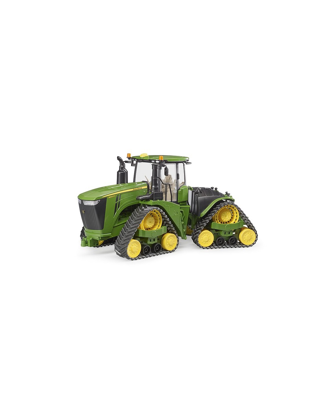 Di pari passo all'aumentare delle esigenze delle moderne aziende agricole, è più importante che mai incrementare l'efficienza delle macchine in servizio. Con il modello 9620RX, John Deere presenta il trattore cingolato più grande e più potente visto finora. Con una potenza del motore fino a 670 HP e i quattro cingoli, che gli conferiscono una potenza di traino favolosa e la migliore protezione possibile del suolo, questo esemplare è il partner ideale quando si tratta di gestire lavori di traino pesanti con attrezzi quali coltivatori o aratri. Questo imponente trattore, nella super-realistica scala 1:16, fa ora il suo ingresso nell'assortimento BRUDER. Come l'originale, il modello presenta la nuovissima trazione a cingoli e lo sterzo articolato in stile fuoristrada. La cabina del conducente è dotata di portiera apribile e un imponente cofano motore, che può essere sollevato per dare un'occhiata all'enorme motore al suo interno. Al gancio di traino con unità di sollevamento regolabile in altezza è possibile fissare numerose unità da rimorchio dell'assortimento agricolo BRUDER.
