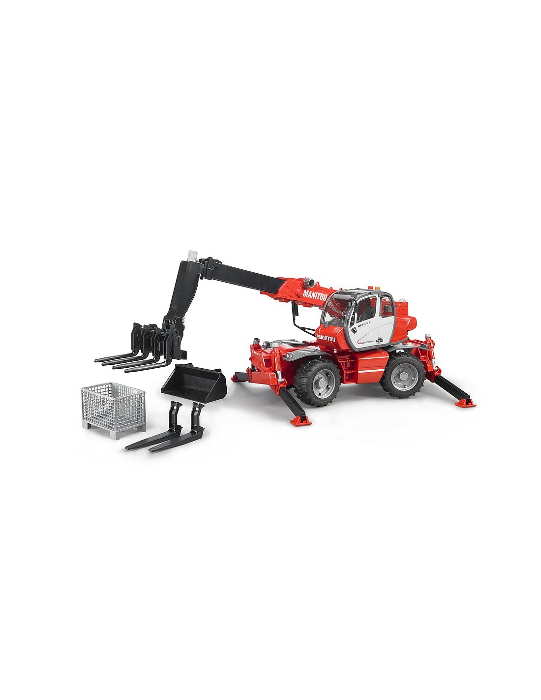 Il carrello elevatore telescopico Manitou MRT 2150 PRIVILEGE è unamacchina edile universale, progettata per consentire la movimentazionedei materiali praticamente ovunque all?interno del cantiere. Ilmodello BRUDER, esattamente come l?originale, presenta ogni tipo difunzione utile a tale scopo. Il braccio telescopico può essere estesoe il livello di inclinazione delle forche in dotazione può essereadattato secondo necessità, in accordo all?angolazione del braccio.Le forche possono inoltre essere sostituite con una pala (fornita)oppure essere dotate degli altri accessori messi a disposizione daBRUDER, per ottenere funzionalità ancora più avanzate. Il carrellopuò essere ruotato a 360° al fine di distribuire il materialeovunque. La stabilità necessaria per gli utilizzi previsti èassicurata, come per l?originale, dai 4 stabilizzatori telescopici.Una peculiarità è offerta dallo sterzo a quattro ruote (diametro disterzata piccolo). Per garantire il facile accesso nel corso delgioco, il volante di manovra è stato posizionato nella strutturarotante, dietro la cabina del conducente apribile. Il movimento disterzata è trasmesso utilizzando degli ingranaggi dall'anellogirevole della struttura rotante alla barra dello sterzo localizzatanel telaio, per offrire un giocattolo innovativo e ancora piùdivertente. Tutto questo è ciò che fa del modello e di tutte le sueinnumerevoli funzioni un vero must per i più piccoli.