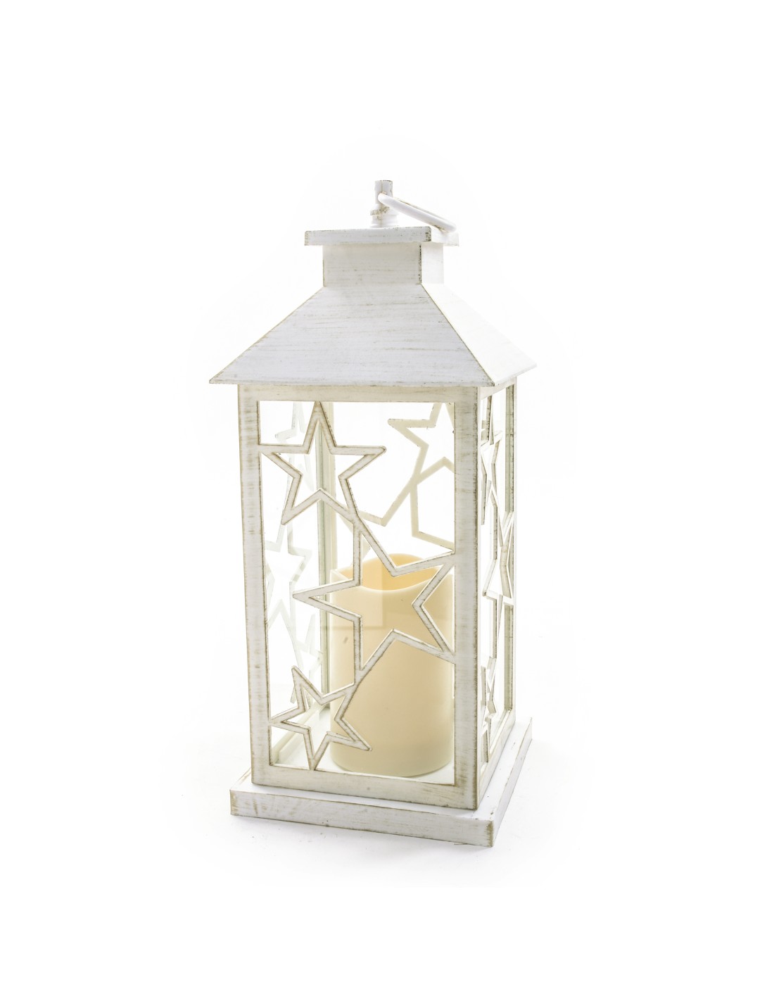 LANTERNA BIANCA CON CANDELA LED E DECO A BATTERIA
