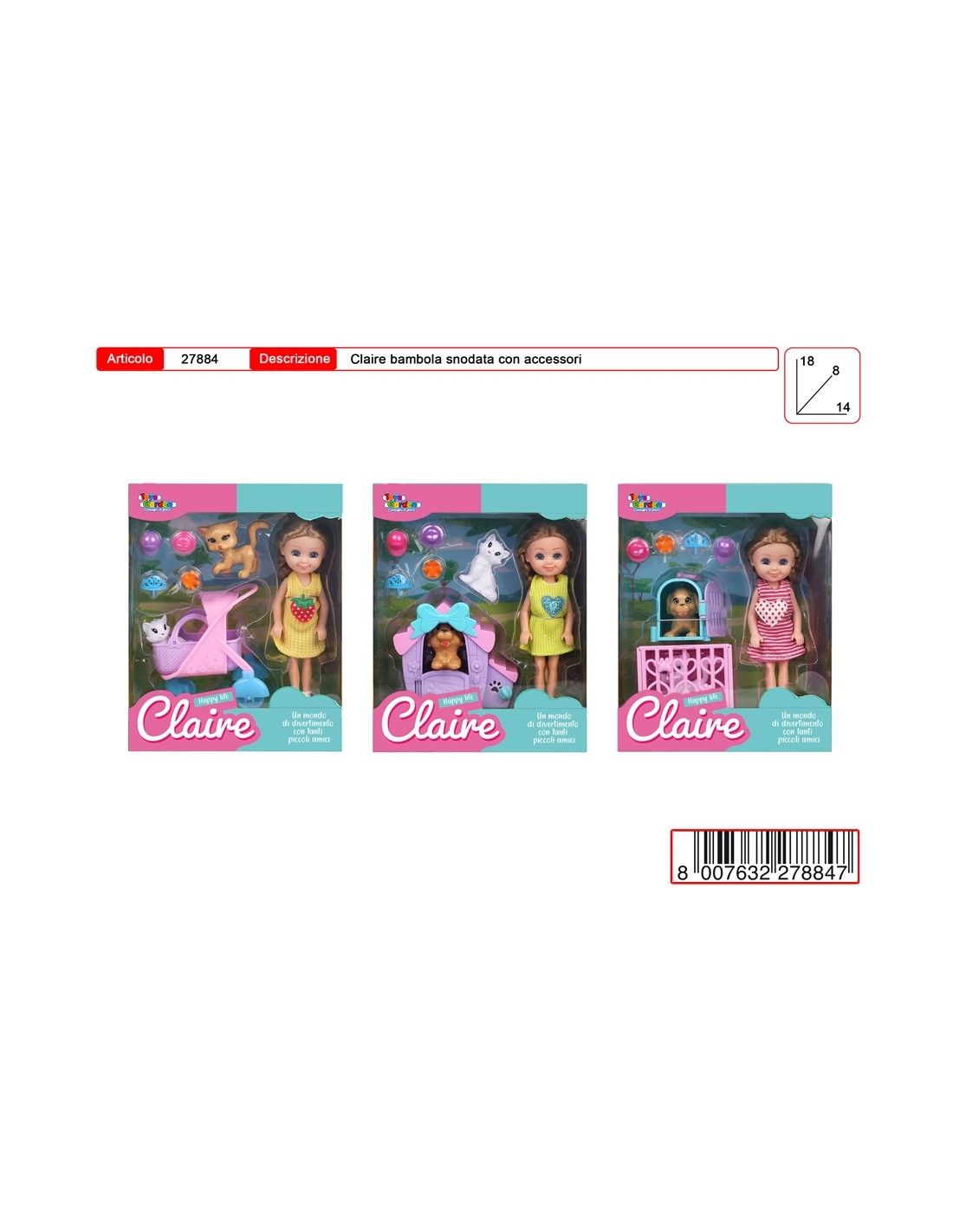 CLAIRE BAMBOLA SNODATA CON ACCESSORI