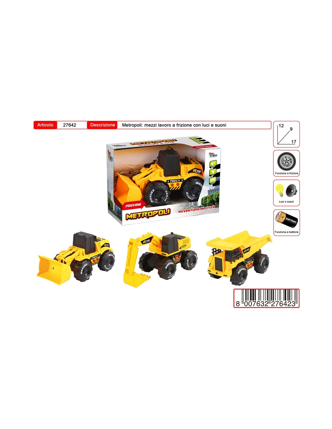 METROPOLI MEZZI DI LAVORO A FRIZIONE CON LUCI E SUONI