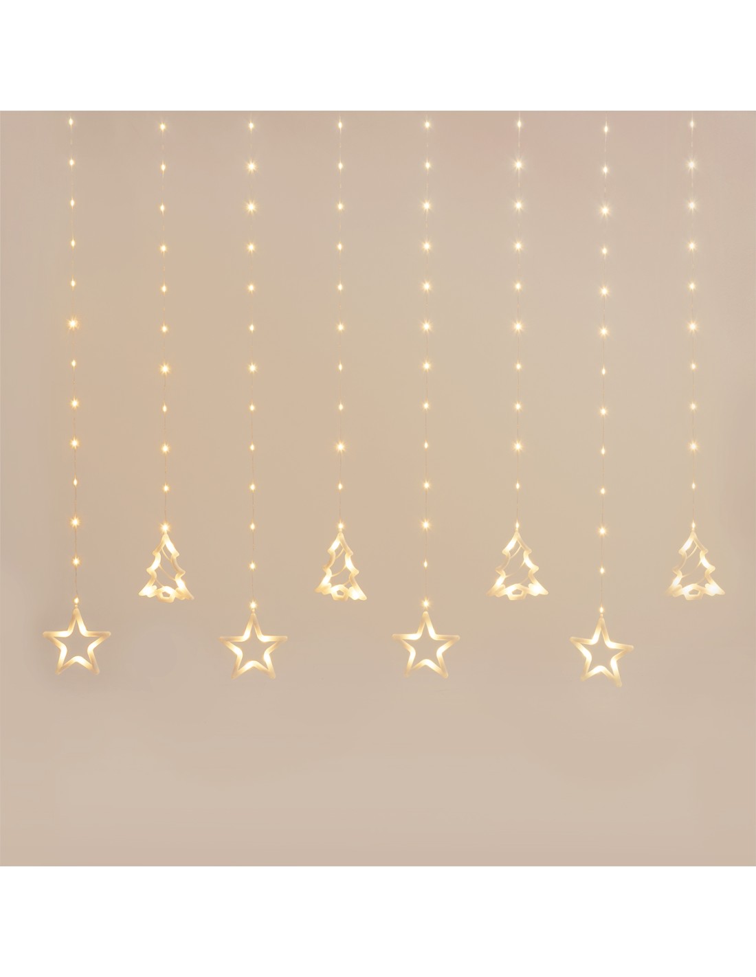 Ice Light 475xH115cm con 20 Decorazioni Mix Stelle / Alberi 560 SMD LED SuperBright BIANCO CALDO ø4mm Cavo Soft Trasparente