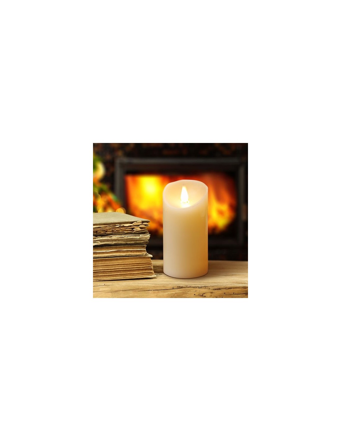 Candela Cilindrica Ø7,5cm H12,5cm Cera Avorio finitura liscia lucida Glossy LED BIANCO CALDO, Fiamma 3D in movimento 3D MOVING FLAME, Timer On-Off 8-16 ore (escludibile), Interruttore On-Off-Timer sotto la base, a Batteria 3xAAA, IP20 uso Portatile, Dimensioni Ø7,5xH12,5cm, Scatola color (XKC Art. CSY75125T).