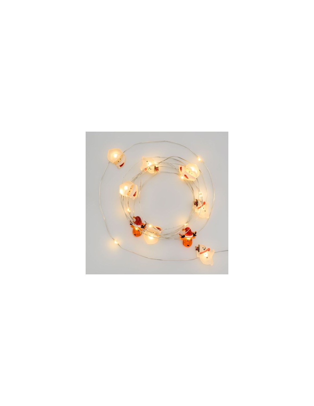 Catena lineare 2m D4 con Decorazioni 3D Babbo / Renna / Pupazzo 20 MicroLED BIANCO CALDO ø1,5mm, versione PDQ, Luce Fissa, a Batteria 2xAA 1,5V, porta batterie con selettore On-Off, IP20 uso Interno e Portatile, Cavo Metallo Argento Metal Silver, Dimensioni 2m, Scatola PVC color ed espositore PDQ Try me (XKC Art. M20S D4 2AA PDQ).