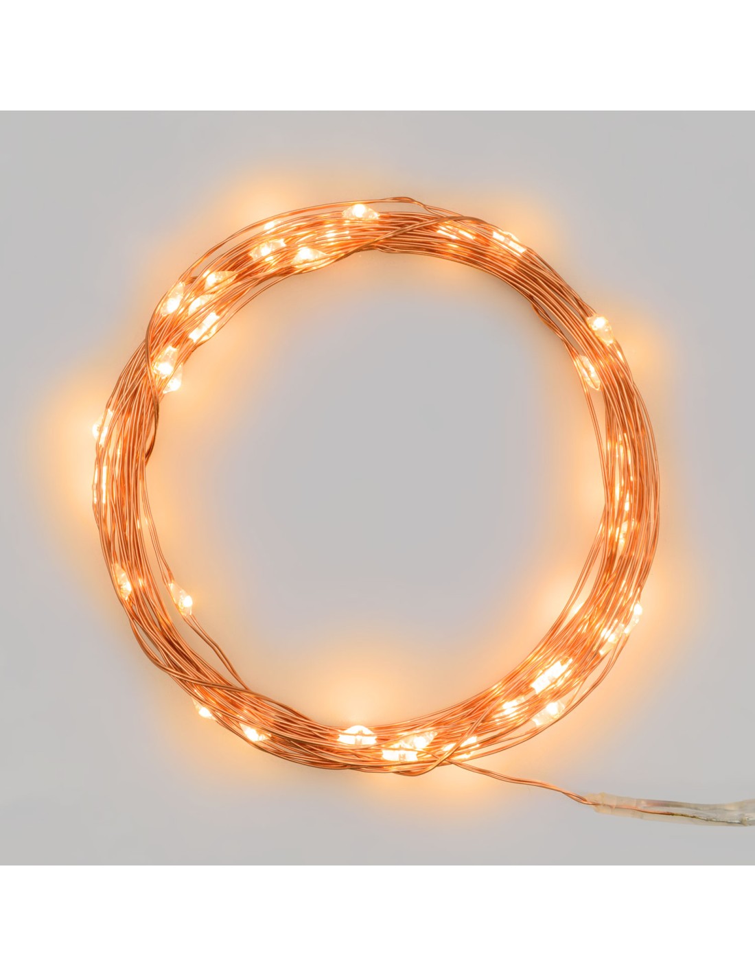 Catena lineare 4m 40 MicroLED TRADITIONAL ø1,5mm, versione PDQ, Luce Fissa, a Batteria 2xCR2032 3V (incluse), micro porta batterie con selettore On-Off, IP20 uso Interno e Portatile, Cavo Metallo Rame Metal Copper, Dimensioni 4m, Scatola PVC color ed espositore PDQ Try me (XKC Art. M40C CR2032 PDQ).