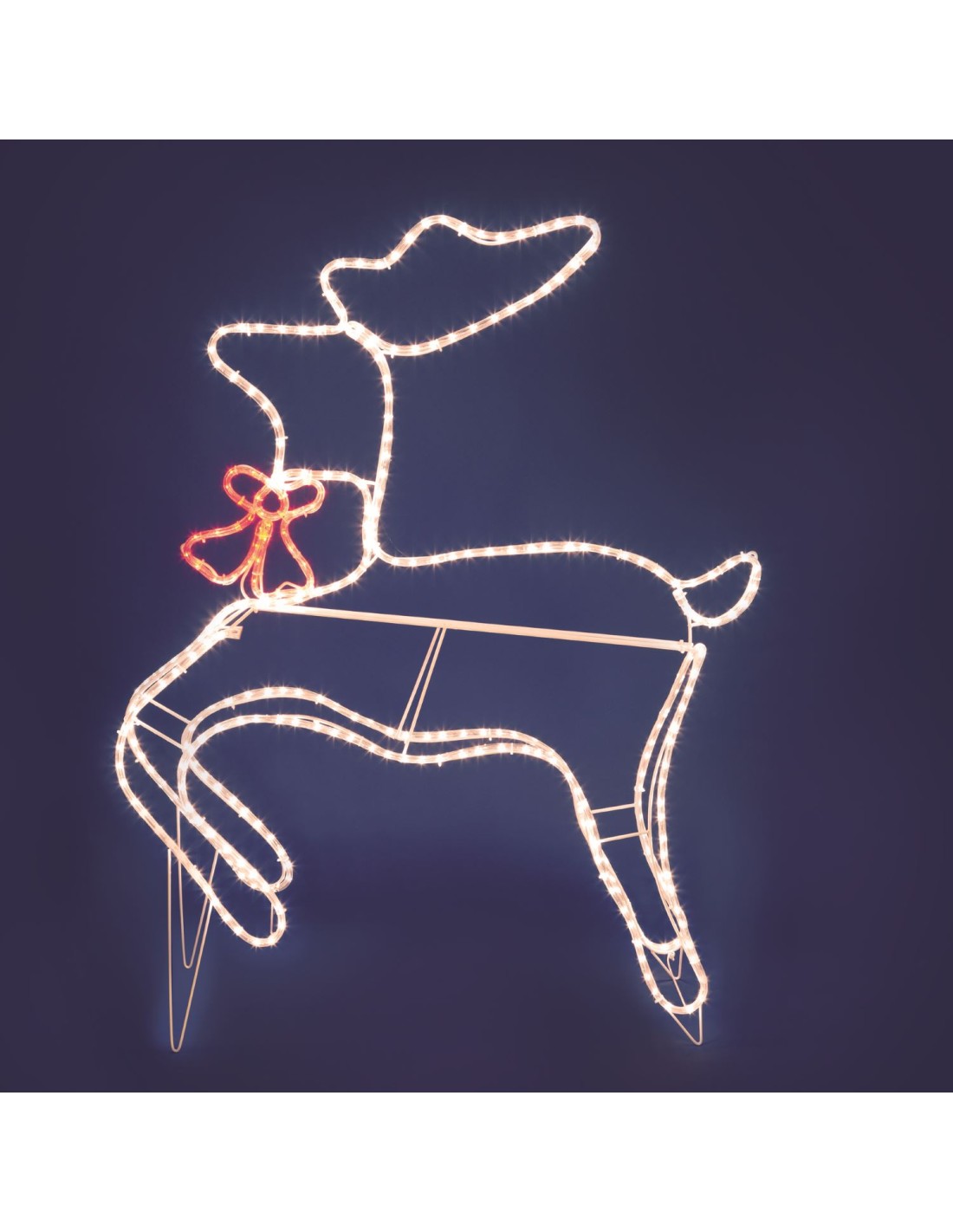 Renna 3D con Fiocco in Tubo Luminoso Ø10mm 324 LED BIANCO CALDO & ROSSO Luce Fissa 230V Esterno 1,5m+80xH120cm
