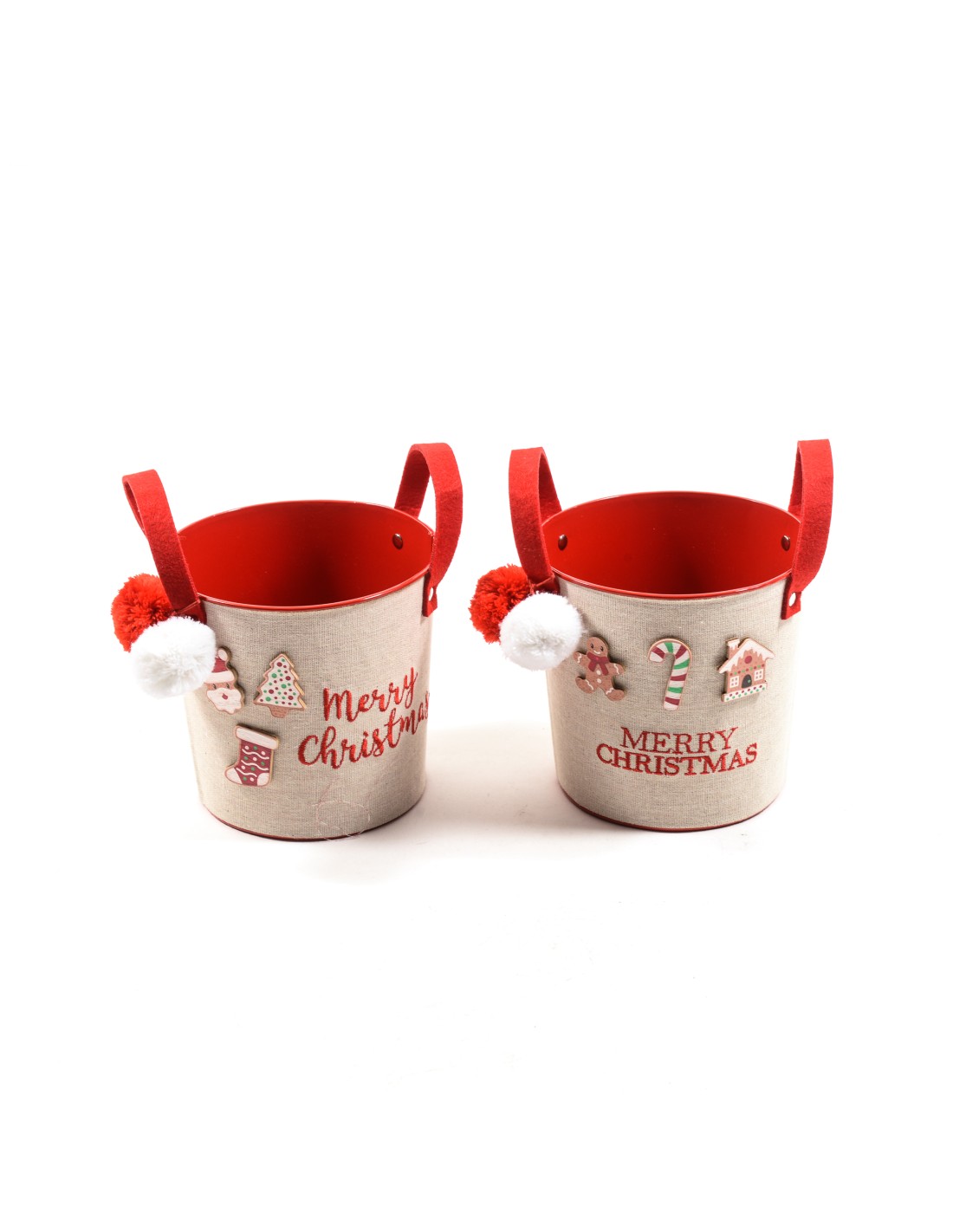 CESTO IN LATTA TONDO DECORATO CON PON PON