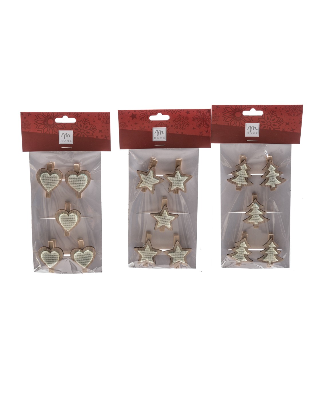 SET 5 MOLLETTE NATALIZIE IN LEGNO 5 CM. IN CONF.APPENDERIA