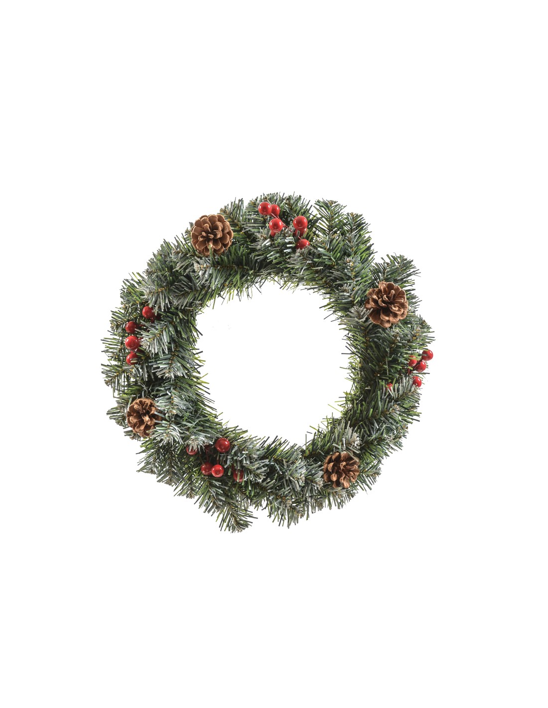 CORONA NATALIZIA CON BACCHE E PIGNE DIAM. 40 CM