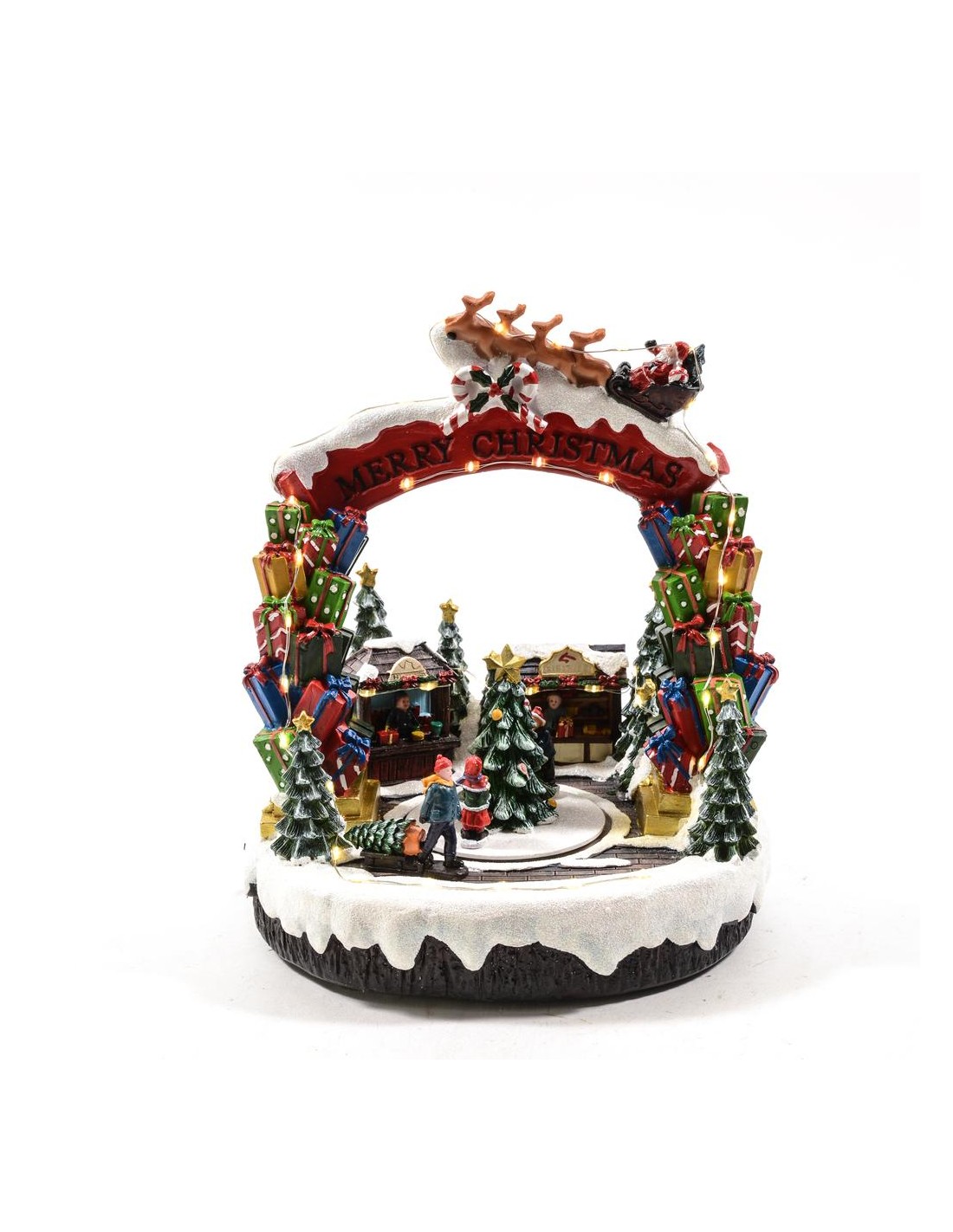 PAESAGGIO NATALZIO CON MUSICA LUCI E MOVIMENTO A BATTERIA E CORRENTE USB 24X18X30CM IN PLASTICA E RESINA IN SCATOLA REGALO