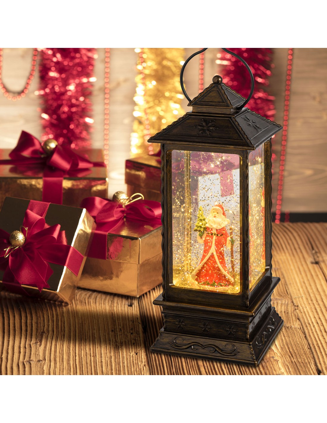 Lanterna Rettangolare Plastica Marrone Brunita GLITTER LED BIANCO CALDO, effetto luminoso scintillante con glitter illuminato nell'acqua in movimento all'interno della decorazione, a Batteria 4xAAA 1,5V, Porta Batterie Integrato sotto la base, Pulsante On-Off