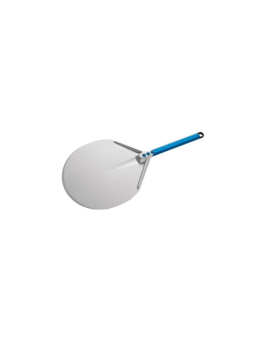 Pala con testa in alluminio anodizzata neutra e manico anodizzato azzurro 30 cm. Ideale per forni a tunnel o piccoli forni da bar/fastfood.