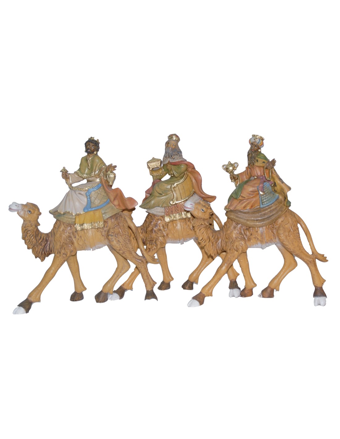 Set tre Re Magi a cammello in stile classico adatto al presepe di dimensioni 20 cm, dipinti a mano.