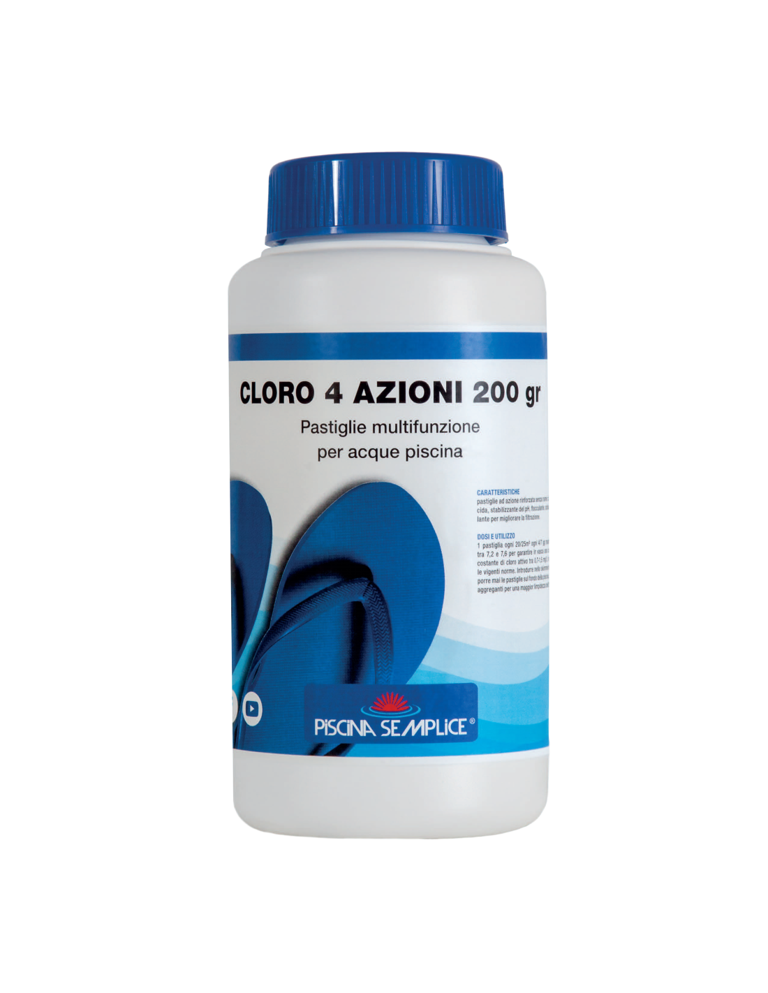 Dose di utilizzo: una pastiglia di CLORO 4 AZIONI ogni 20-25 metri cubi di acqua ogni 4-7 giorni