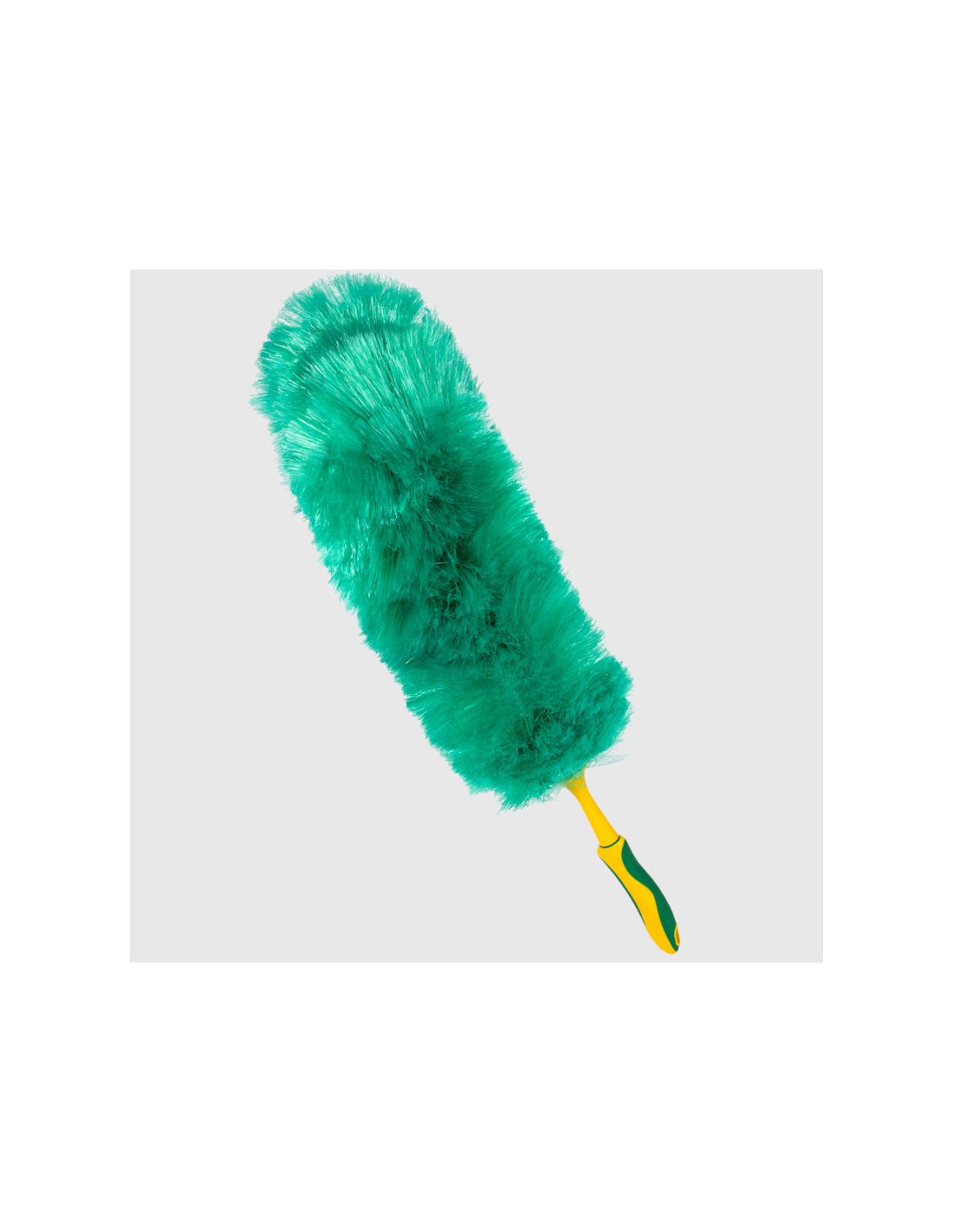 Piumino da spolvero in fibra elettrostatica con impugnatura in gomma. L'anima interna in metallo extra flessibile permette di adattare la curvatura del piumino a qualsiasi esigenza. Adatto a tutte le superfici della casa. Manico in plastica con pratico gancio per appendere.