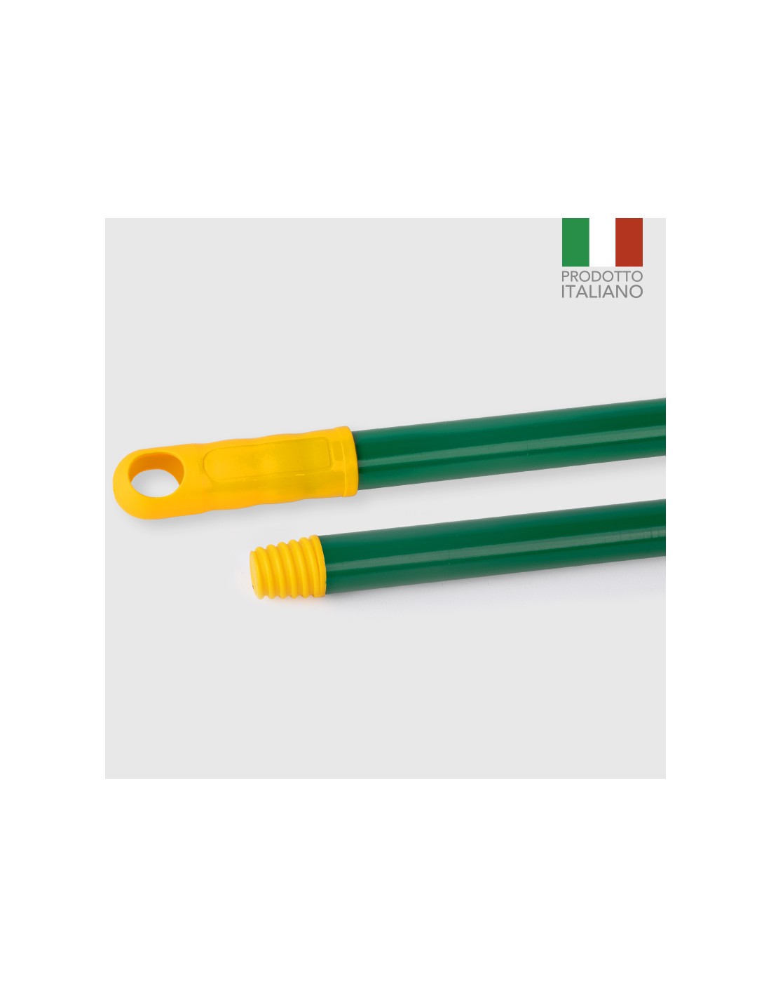 Manico in metallo ad alto spessore, plastificato. Cappuccio appendino e filetto in plastica. Vite a filetto universale italiano. Colore: rosso. Lunghezza: 130 cm. Diametro: 21 mm. Spessore: 0,34 mm. Prodotto fabbricato in Italia.