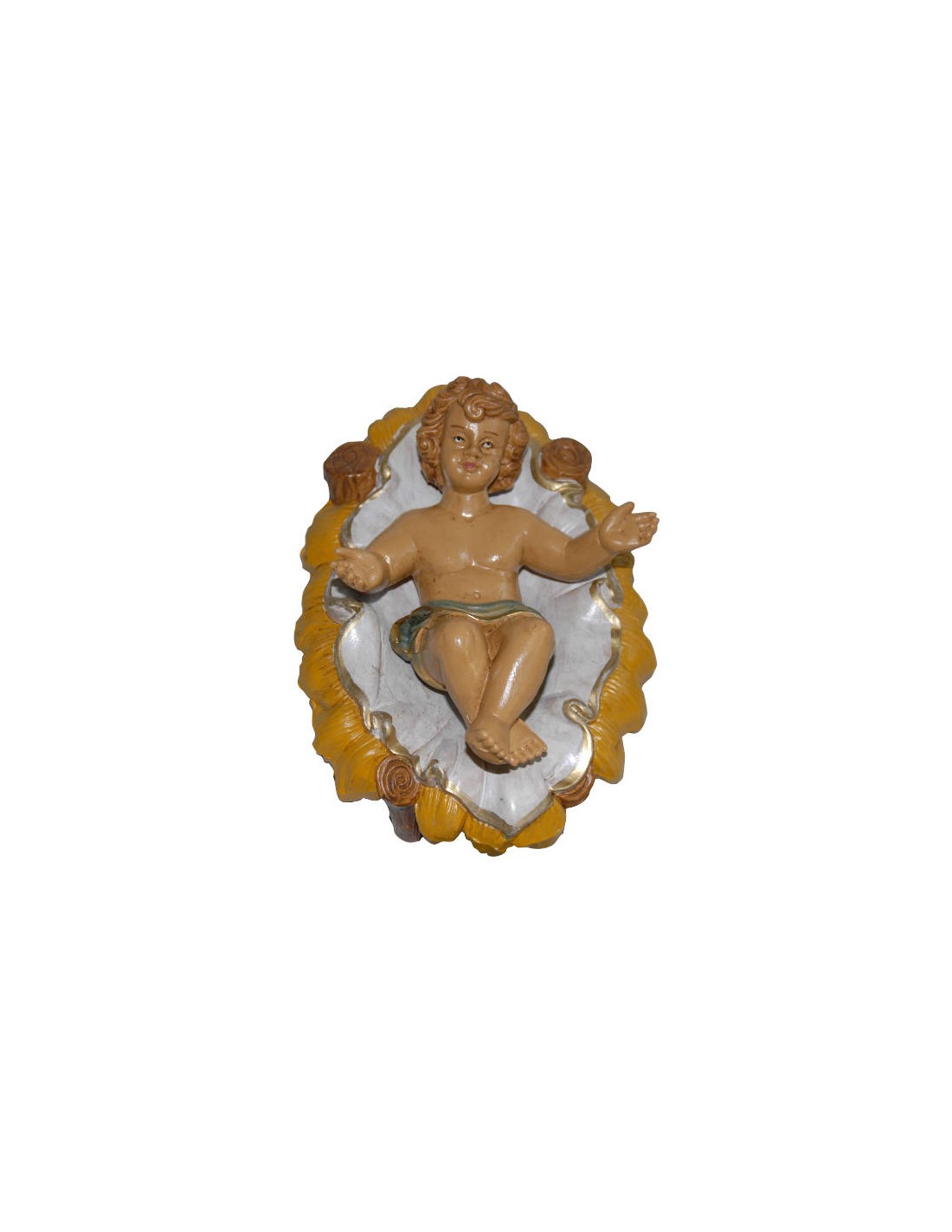 Gesù bambino in culla realizzato in stile classico adatto al presepe di dimensioni 30 cm, dipinto a mano.